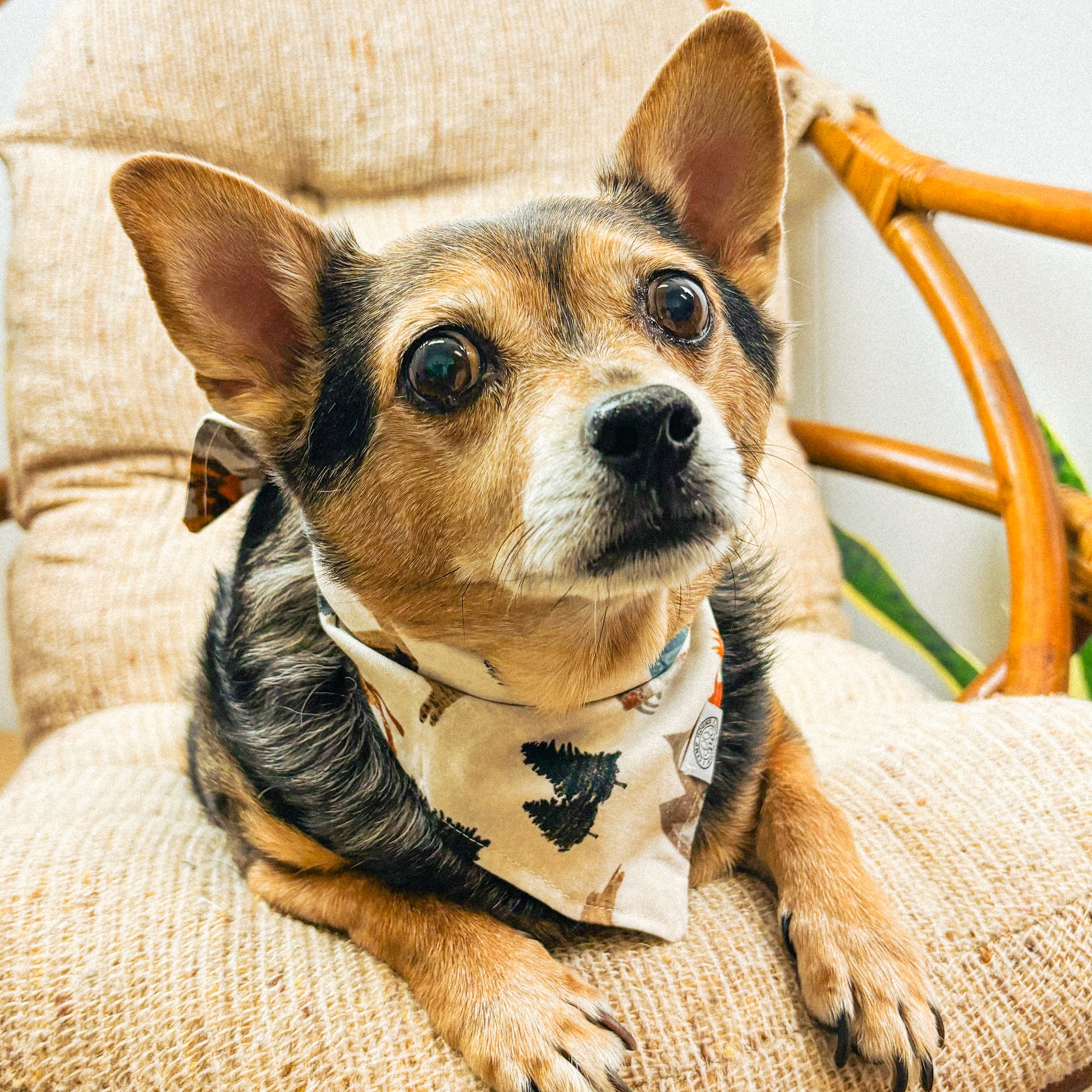 This Bear Bandana is perfect for your pup's adventure style! Featuring a mountain and wildlife print, this bandana is a must-have for all your outdoor outings. Durable cotton fabric ensures your pup will look stylish and hike-ready all season long.