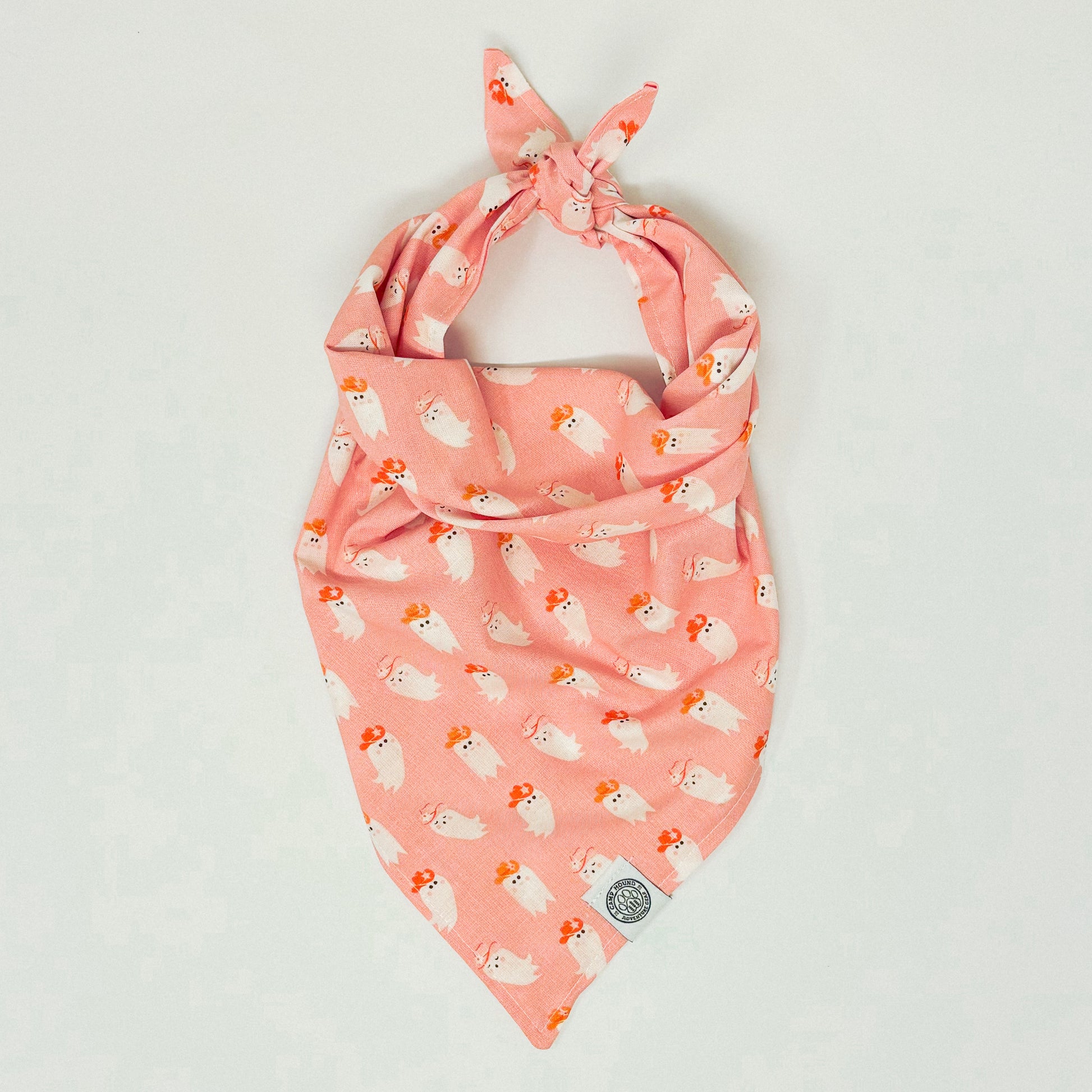 Elevate your pup's style with the Boo Bandana! This adorable Halloween accessory features a cute ghost cowboy design, perfect for showcasing your furry friend's festive spirit. Made with soft and durable fabric, your dog will look both cute and comfortable. Upgrade your pet's wardrobe with this must-have bandana!