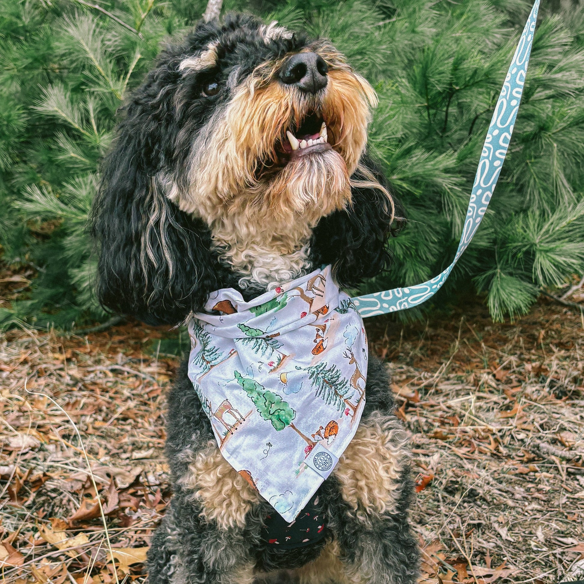 Introducing the Forest Bandana! Perfect for your pup's woodland adventures, this dog bandana features a charming forest design that will add a touch of nature to their wardrobe. Made from high-quality materials, it's durable and comfortable for your furry friend to wear on their daily walks. Explore the great outdoors with style and ease with the Forest Bandana.