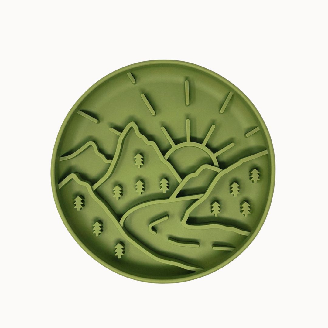 Does your pup inhale their food? Slow them down a bit with our Mountaineer Slow Feeder. Made of food-grade silicone and has a suction cup on the back to prevent sliding.