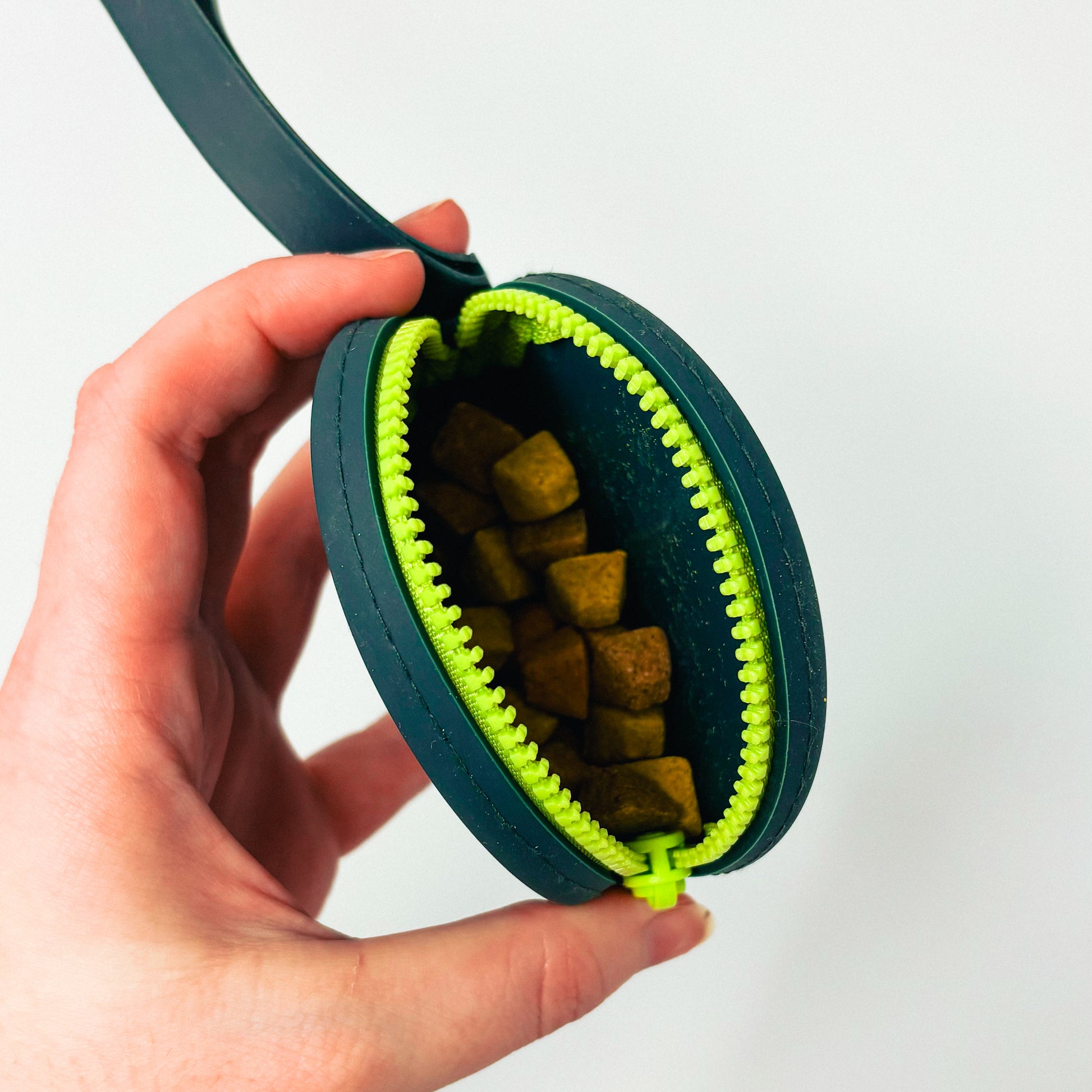 Easily carry dog treats on your walks with our silicone dog treat pouch. The convenient zip closure ensures treats stay fresh, while the carrying strap allows for hands-free transportation. Simplify your pup's training and reward them on-the-go with our treat pouch!