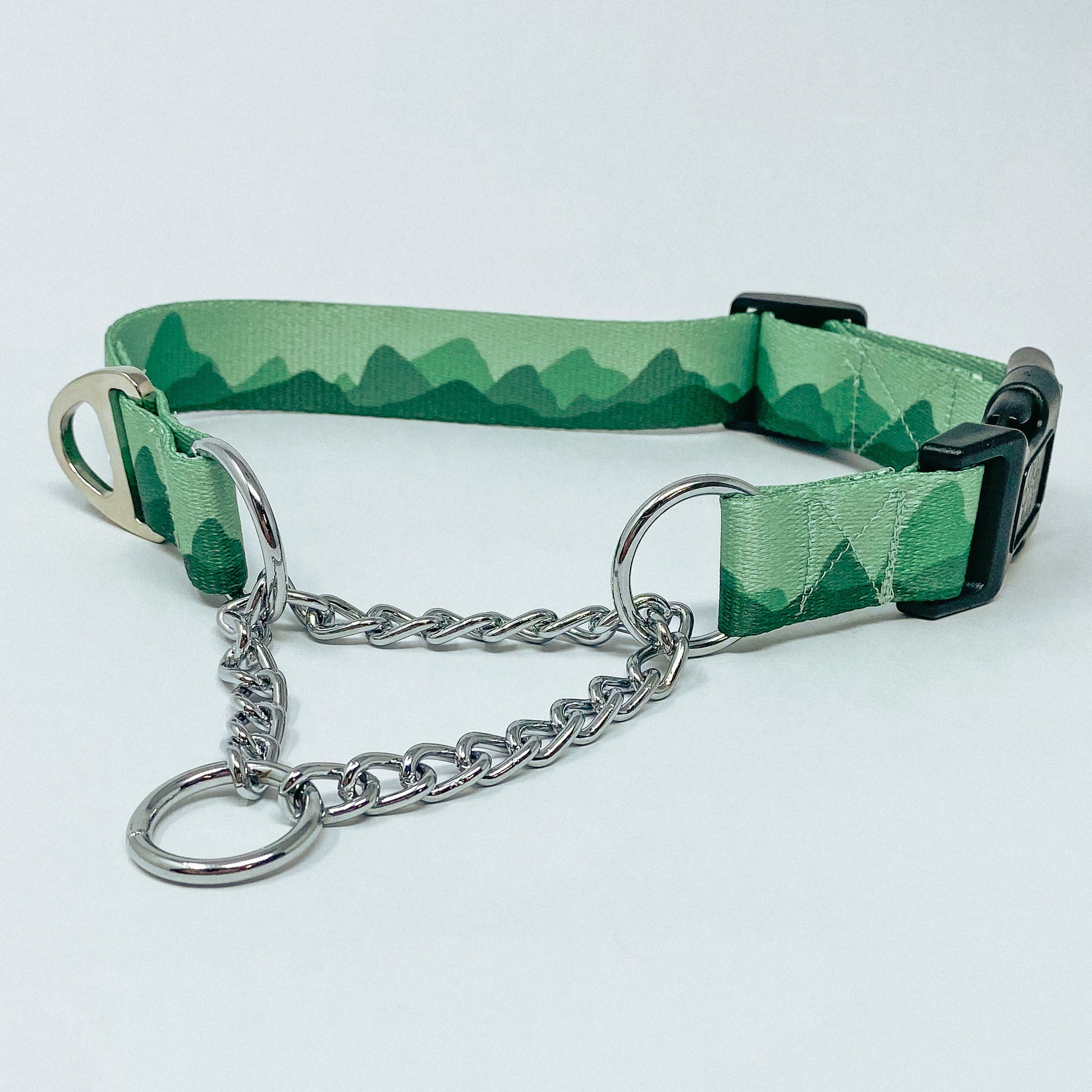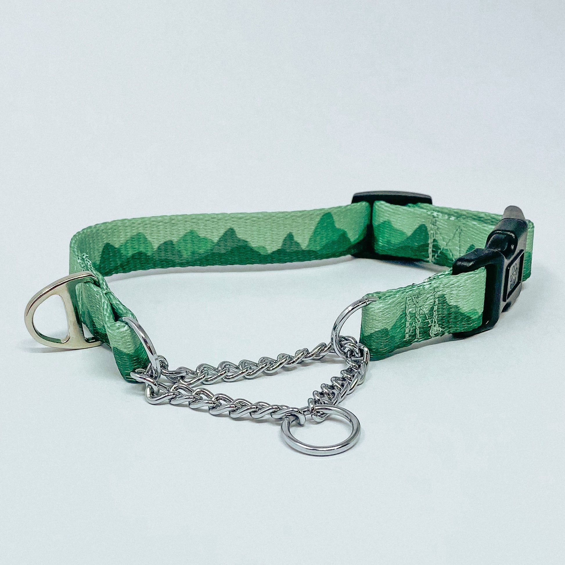 This Summit Martingale Dog Collar is a must-have accessory for your furry hiking partner. Featuring a peak mountain design on a sage green background, you'll be ready to tackle any adventure together! So strap on this practical and stylish collar, and take that trek to new heights!
